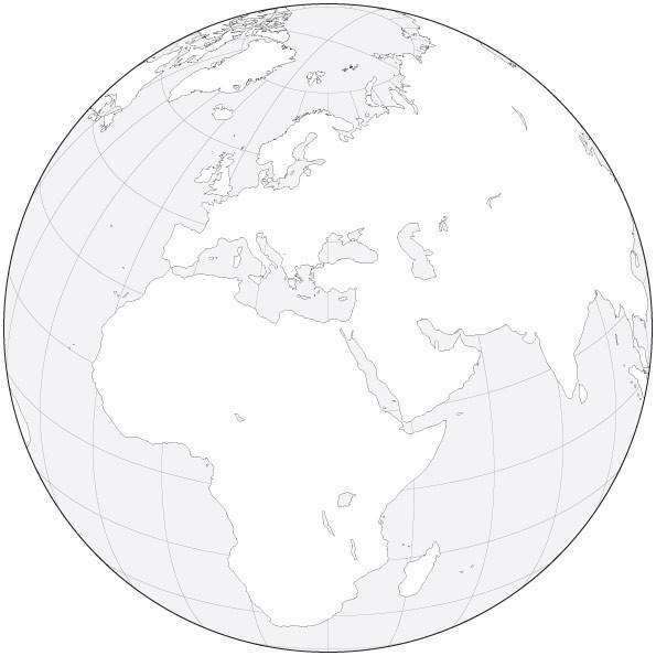 Globe over Africa & Europe Black & White Blank Outline Map